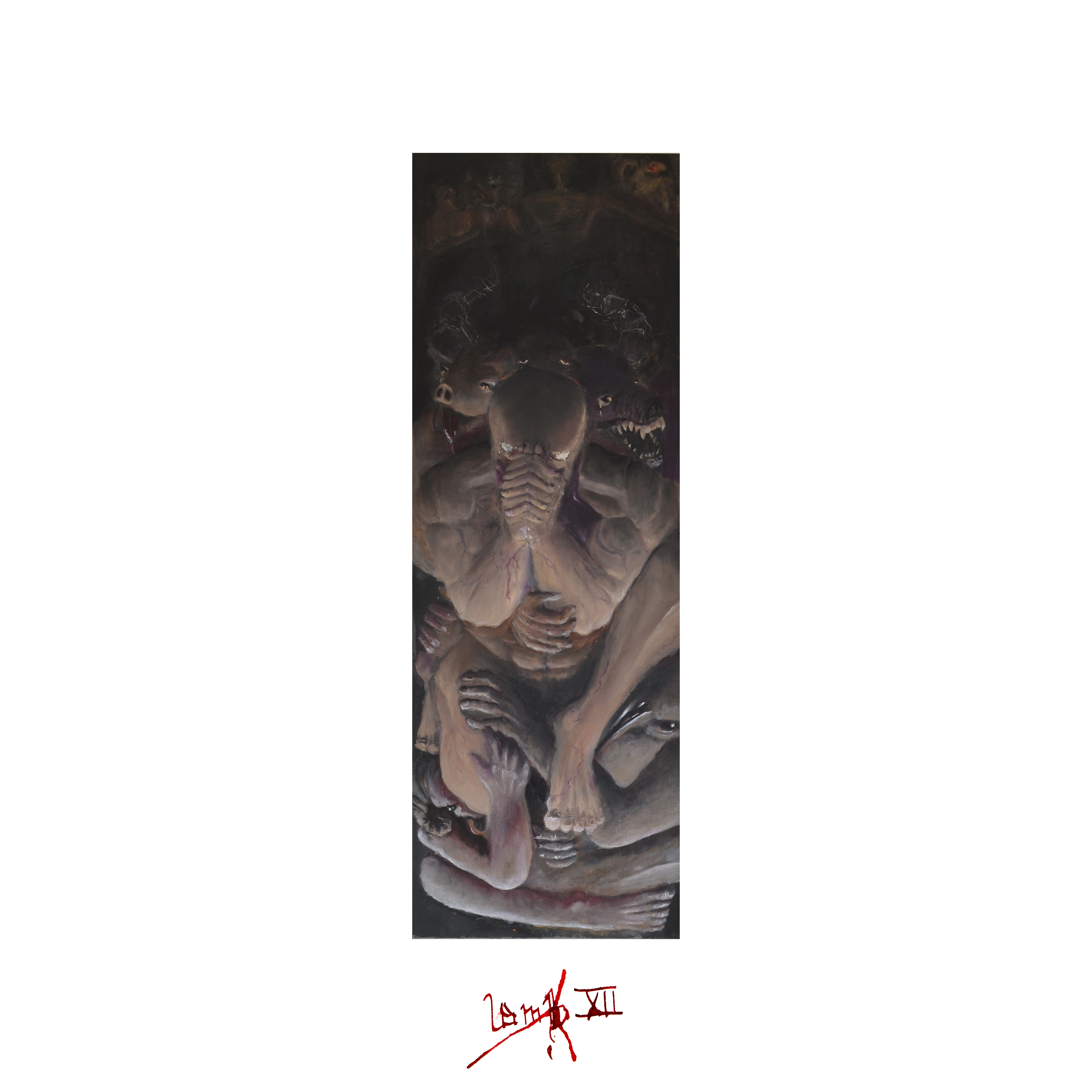 [ɤ]: The Lexicomythographic universe itself provides commentary on the exclusionary nature of academic publication, destabilising the context of the series as it pertains to belief. The survivor, painted as unreliable narrator of their own story, faces relentless pressure to provide proof of their own experience. This pressure compounds the harm. The blurring of confessional vulnerability with complex fictional frameworks forges a therapeutic aesthetic distance, as the artist places herself both within and outside of her own assault, in a superpositional expression of radical forgiveness — for both self and other.